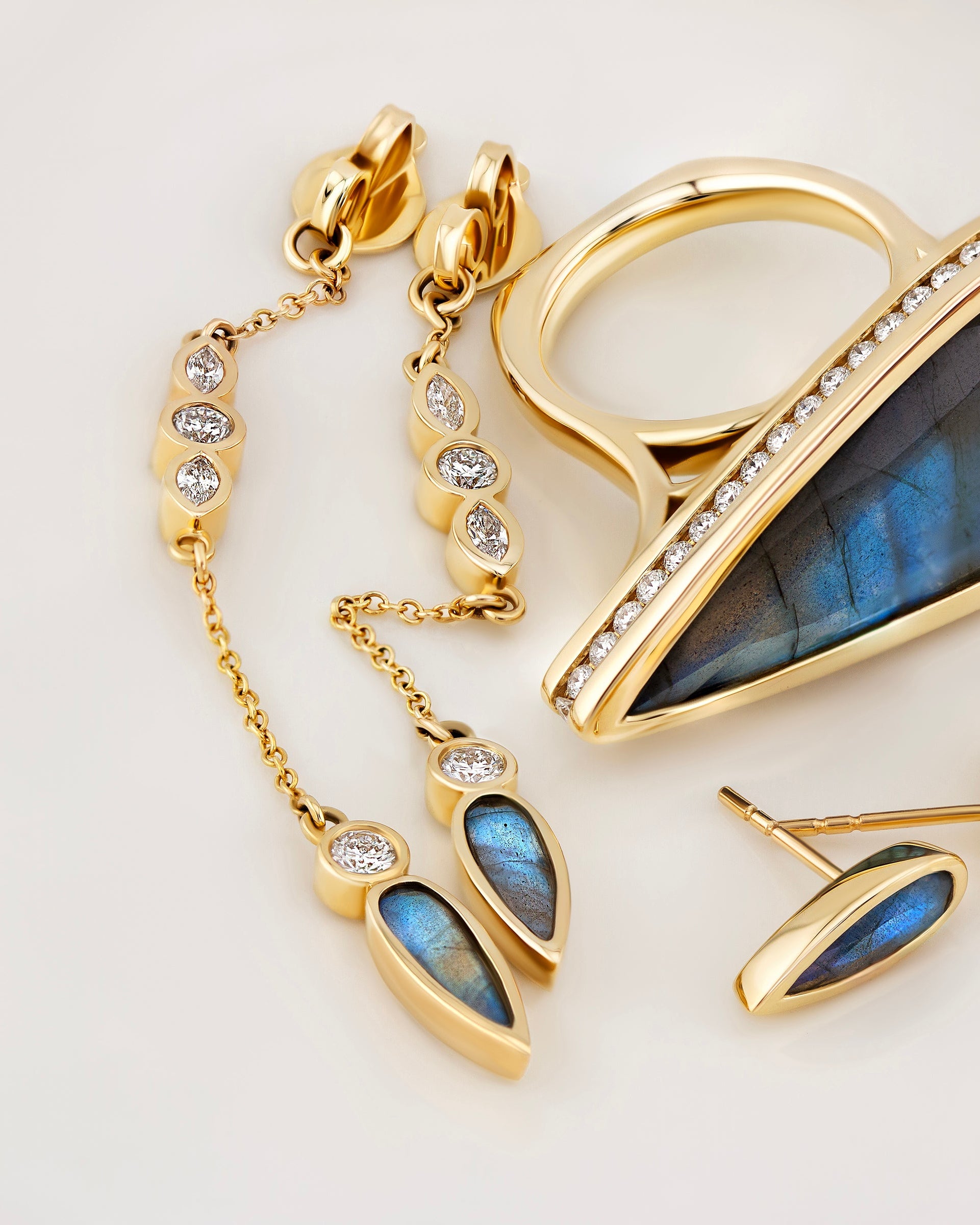 Stones: 0.56 ctw Lab Diamonds, 0.40 ctw Labradorites (per pair)